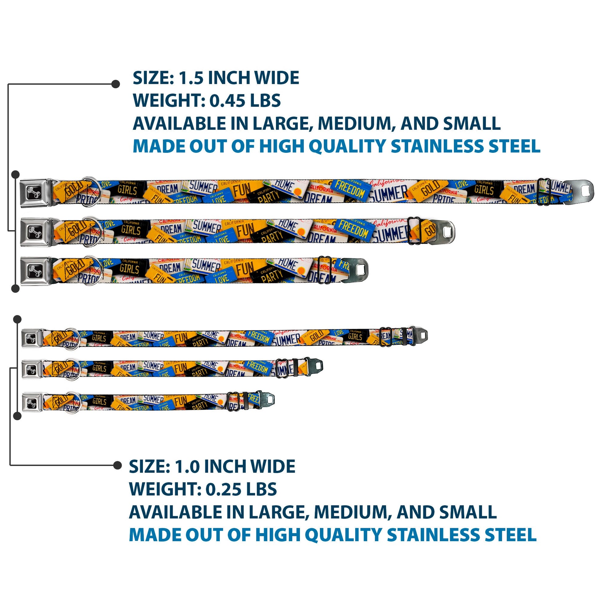 Dog Bone Seatbelt Buckle Collar - Cali License Plates Stacked